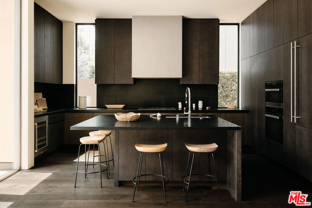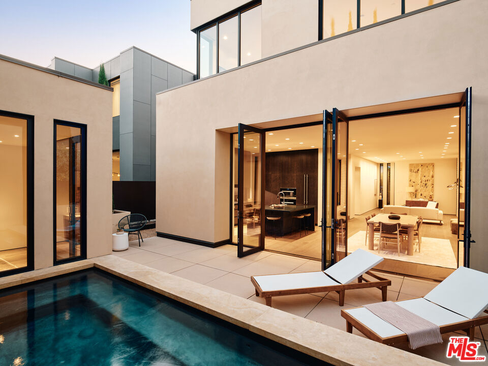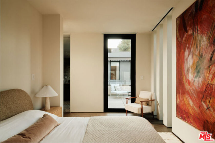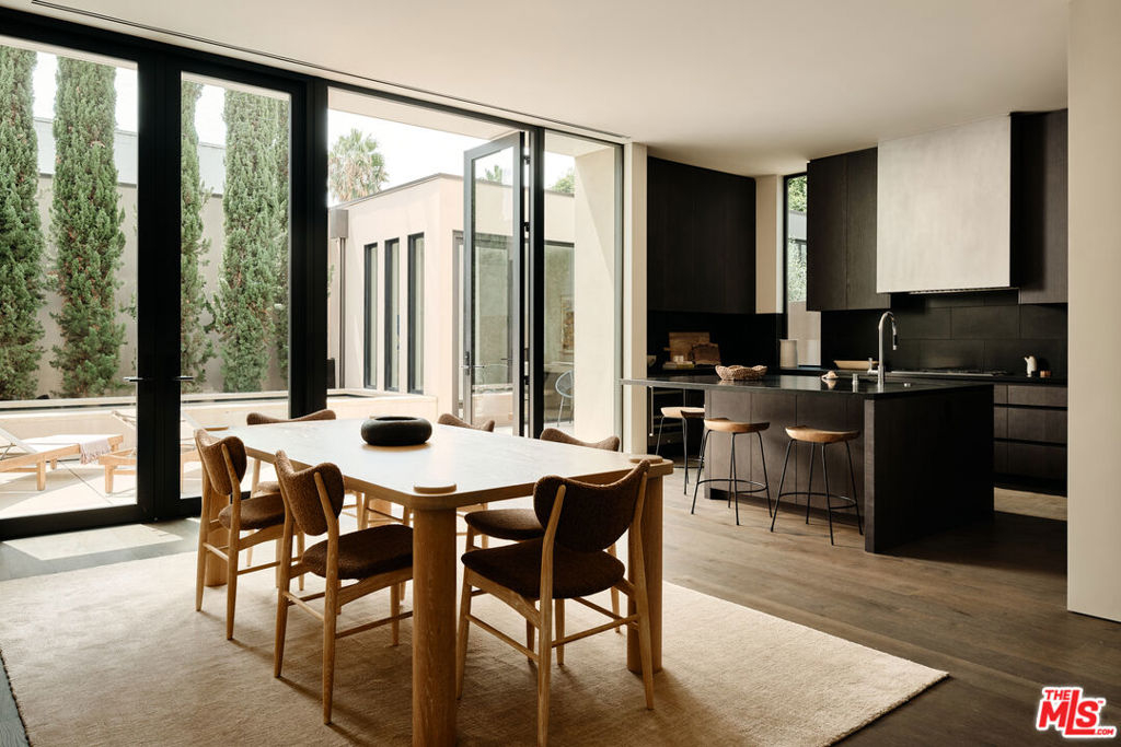 Brick House by Olson Kundig at 8899 Beverly | This distinctive architectural residence combines the privacy of a single-family home with the services of a luxury building in the heart of West Hollywood. One of only eight signature houses within the development, Brick House celebrates the warmth and texture of clay-fired brick through Olson Kundig's expressive material design, giving the home its unmistakable personality and mid-century spirit.The residence offers three bedrooms and two and a half bathrooms. A brick-surrounded fireplace anchors the living room, while Fleetwood doors open wide to the sunny private courtyard for effortless indoor-outdoor living. The kitchen features an oversized island with ample room for meal preparation and casual dining. Interior finishes include dark-stained quarter-sawn walnut casework and wood flooring throughout.Upstairs, the primary suite opens to a private balcony with views of the Hollywood Hills and includes a walk-in closet and spa-like ensuite bathroom.The sunny Mediterranean-inspired courtyard is centered around an oversized outdoor spa framed by sandstone pavers and cypress trees. A detached studio on one side of the courtyard offers a peaceful retreat-ideal for an office, meditation room, home gym, or artist studio- while the opposite side includes an outdoor shower and enclosed powder room. Among the most character-driven homes in the collection, Brick House offers the privacy of a detached architectural residence paired with the convenience and services of a full-service building. Located in one of West Hollywood's most walkable neighborhoods. As part of the Olson Kundig-designed 8899 Beverly development, homeowners enjoy access to 24-hour concierge and property management services, a state-of-the-art fitness center, and a landscaped amenity deck with resort-style pool and spa and a custom outdoor kitchen. One of the final remaining homes available in the development, Brick House offers a rare opportunity to own a fully private, architecturally significant residence with the services and amenities of a world-class enclave.