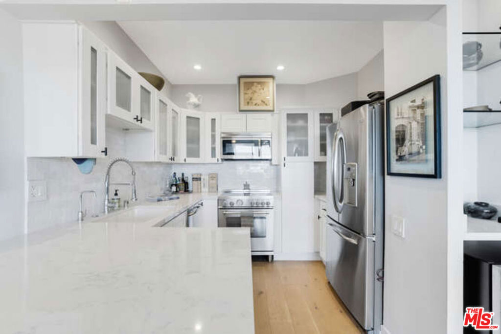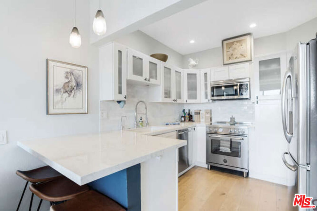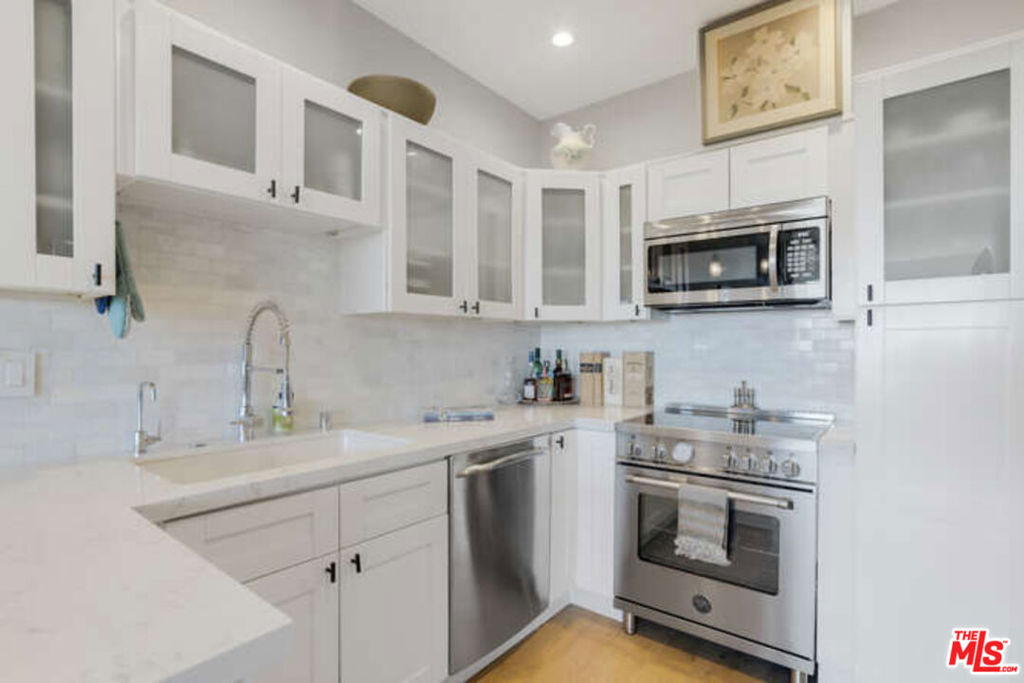 Tastefully remodeled 1 BR view condo in prime, tranquil Norma Triangle! This well-appointed home is on the 'view side' of the building with unobstructed south-facing views. Tons of natural light streaming in all throughout the day! This is the perfect pied-a-terre for the bi-coastal traveler. Sophisticated hardwood wide plank oak floors throughout the bright airy living areas. The updated kitchen not only looks great but is laid out to please the amateur chef in you! White shaker cabinets, quartz counters, and brand-new stainless-steel appliances, including a Bertazzoni range and microwave. The living room has a linear fireplace and big windows. Off the living room is a medium size balcony for some nice outdoor space to have plants or a bistro table with four chairs for al fresco dining. The master bedroom has a walk-in closet with laundry hooks. The sumptuous master bathroom was completely redone. Central HVAC. Low HOAS (includes EQ) Residential Neighborhood is convenient and very walkable. Building amenities include a swimming pool, rec room, and lobby.