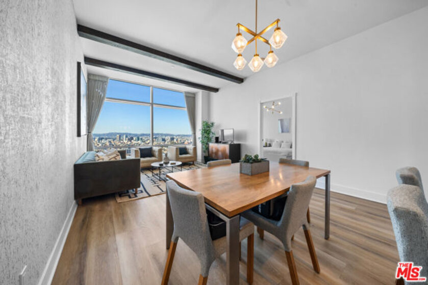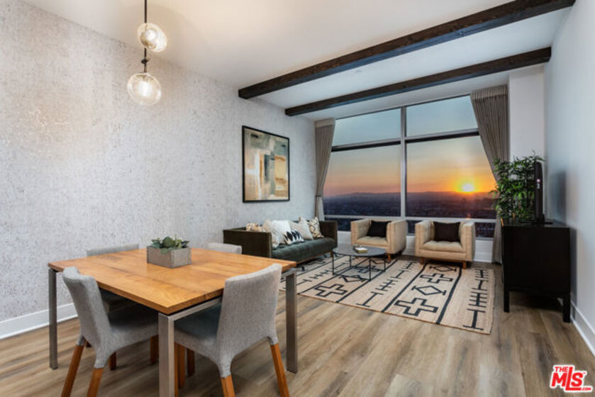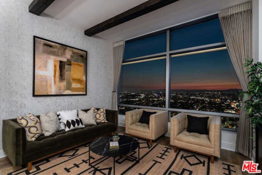 Live above it all in one of Los Angeles' most prestigious addresses. Perched on the 32nd floor of the iconic Ritz-Carlton Residences, this impeccably remodeled and highly upgraded residence defines modern luxury living. From the moment you step inside, you are greeted by walls of glass that frame sweeping, unobstructed vistas from the shimmering Pacific Ocean to the majestic mountain ranges, the legendary Hollywood Hills, Griffith Observatory, and the Hollywood Sign. Facing west, this residence claims the building's most coveted orientation, offering breathtaking daylight panoramas, dramatic sunsets, and a dazzling city skyline at night. The interior has been thoughtfully reimagined with designer details and timeless finishes: custom wood beams, striking gold and black accents, wide-plank flooring, and soaring ceilings that enhance the sense of volume and light. The sleek gray kitchen cabinetry complements the open layout, while a reconfigured floor plan now features a valuable additional walk-in closet in the bedroom, maximizing storage and functionality.Conceived by world-renowned Gensler and developed by AEG, The Ritz-Carlton Residences provide an unmatched lifestyle of refinement and ease. Residents enjoy five-star, white-glove services including 24-hour concierge, valet, doorman, security, housekeeping, and access to the Ritz-Carlton's signature spa and dining venues. Amenities include a resort-style rooftop saltwater pool with private cabanas and bar service, state-of-the-art fitness facilities, and more. Set in the heart of the city's most vibrant district, you are just steps from award shows, world-class concerts, major sporting events, and acclaimed restaurants. A true sanctuary in the sky, this residence includes one valet parking space and one storage unit. Square footage is estimated. Experience the height of sophistication and the ultimate in city living.