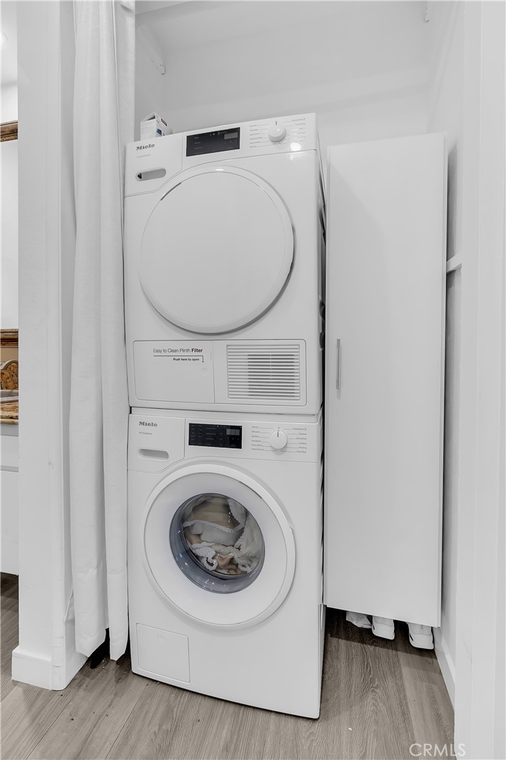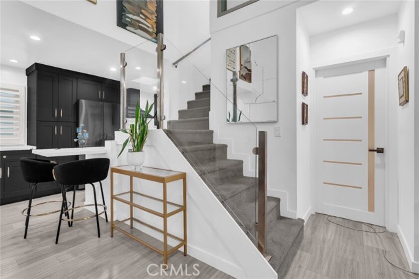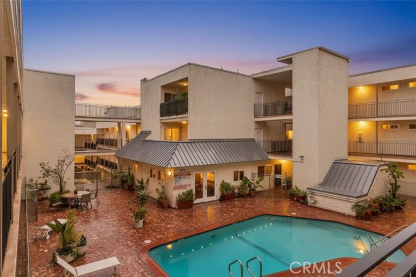 2-story penthouse townhome w/ views nestled in the heart of West Hollywood's Norma Triangle. This comfortable townhome offers the perfect blend of amenities and convenience, boasting 2 bedrooms and 2 bathrooms, each functioning as its own primary suite. Step inside and discover an inviting living space with updated laminate flooring and glass enclosed staircase that adds a modern touch. The vaulted ceiling in the living room adds a sense of grandeur and opens up the space, allowing an abundance of natural light to flow throughout. Other features include ample closet space (3 closets in the downstairs bedroom!), wall of glass in the upstairs bedroom, IN UNIT LAUNDRY, recessed lighting, and plantation shutter window coverings. One of the true highlights of this penthouse is the upstairs private patio, where you can enjoy breathtaking VIEWS of the downtown LA skyline! It's the perfect spot to unwind, entertain guests, or savor your morning coffee as the city comes to life. Convenience is key, with TWO SIDE BY SIDE PARKING SPOTS in the gated underground garage for your vehicles along with extra storage. The building is secure entry with cameras for your peace of mind. Location is everything, and this condo places you within easy reach of all the exciting attractions and amenities that West Hollywood has to offer. Enjoy the city's vibrant nightlife, renowned restaurants, boutiques, and cultural hotspots, all just moments from your doorstep. Community amenities include large pool with lounge chairs and a new workout room. Adding to the appeal, this property boasts VERY LOW HOA DUES that all utilities except for electricity, making it a cost-effective choice for homeowners.