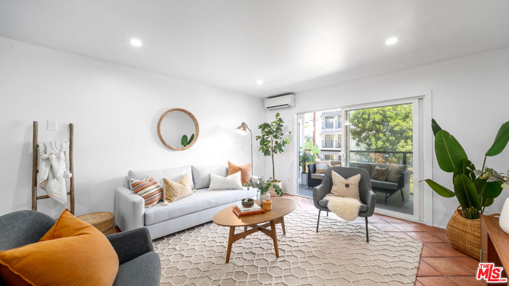 Perfectly positioned within West Hollywood's cherished Norma Triangle neighborhood 1 block from Beverly Hills & all the area's variety of best offerings. Conveniently located with easy access to lobby, elevator, open-air stairs, and gated parking with two single parking spaces. Rare natural terracotta flooring greets you throughout the east facing living room with double pane sliding doors, recessed lighting and spacious balcony to enjoy morning, noon, or night. Keep cool or bring the heat with upgraded central mini-split A/C & Heat throughout each room. Open dining area and kitchen with granite counter tops and stainless steel appliances. Comfortable bathroom with generous storage, separate tub/shower combination. Relaxing bedroom with balcony sliding door access, walk-in closet with stackable Miele washer and dryer included, and additional hallway closet makes for practical living. Building amenities include welcoming secured lobby, courtyard pool, and newly remodeled recreation room.