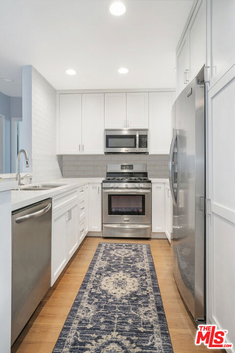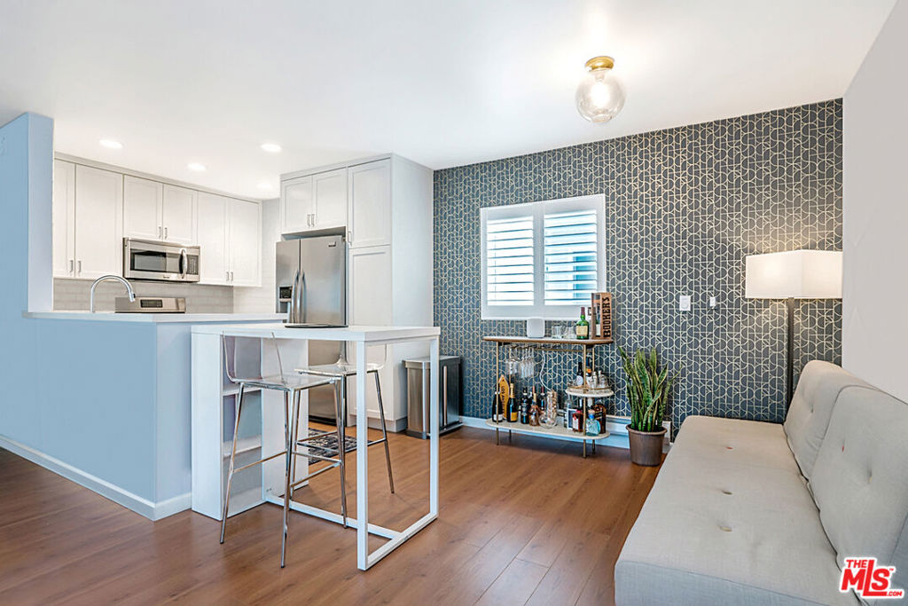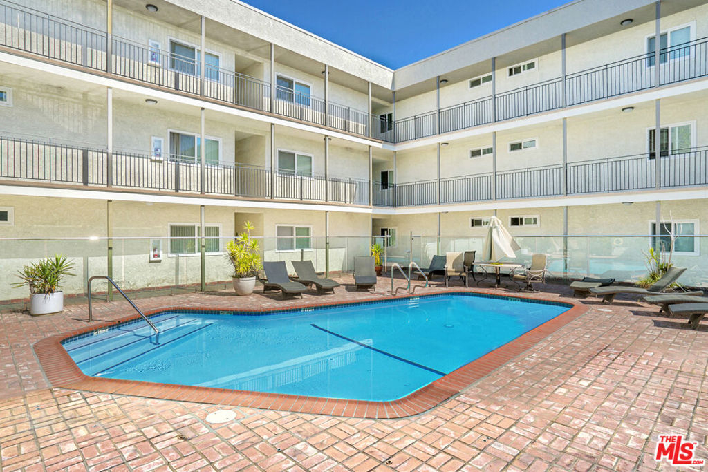 An exceptional opportunity presents itself to acquire a hip and cool condominium situated in the highly sought-after West Hollywood area. This immaculate residence boasts a renovated, open floor plan located on the top floor, ensuring the utmost privacy and tranquility as it shares no common walls. Adding to the convenience, an elevator is located just outside the front door, accessible via a catwalk. The kitchen is elegantly appointed with quartz countertops, a glass subway tile backsplash, and stainless steel appliances, including a dishwasher, fridge, and oven/stove. The kitchen seamlessly flows into the dining area, large living room, and balcony, offering captivating views of the West Hollywood Hills and the pool. Additionally, the bedroom provides direct access to the balcony and features a walk-in closet, complete with a stackable washer/dryer, as well as a separate mirrored closet. The bathroom exudes a sense of luxury with its double sinks and glass-enclosed shower. Furthermore, the property has undergone renovations within the past five years. This prime location allows for a short stroll to Soho House, as well as an array of restaurants and shops throughout West Hollywood and the Sunset Strip. Welcome to your new home! Some images have been virtually staged and/or enhanced to better showcase the potential of rooms and spaces in the property.