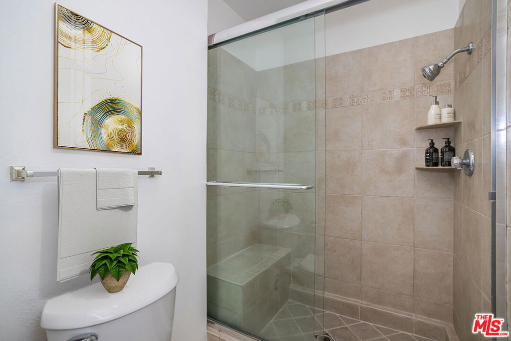 Located in Doheny Terrace, one of West Hollywood's most amenity-rich condominium buildings in the sought-after Norma Triangle, this spacious 1,257 sq.ft. 2BR/2BA residence is quietly set at the rear of the complex with a large private balcony ideal for outdoor living. The interior features hardwood floors throughout, a living room with fireplace and wet bar, motorized blinds, generous closet space, and a newly installed in-unit LG stacked washer/dryer for added convenience. The layout includes a large primary suite with en-suite bath and ample storage, a well-sized second bedroom with adjacent full bath, and a kitchen with travertine countertops and flooring that opens to the dining area and breakfast bar. Additional highlights include newer windows, a newer Fleetwood sliding glass door, fresh interior paint, and new LED bedroom lighting. Recently updated electrical. Building amenities include a pool, sauna, gym, and laundry room. Just blocks from the Sunset Strip, Beverly Hills, and top WeHo dining, shopping, and nightlife. Two gated side-by-side parking spaces near the elevator. Low HOA dues of $682.40/month include earthquake insurance. Seller to pay pending assessment of $87/month for current building improvements.