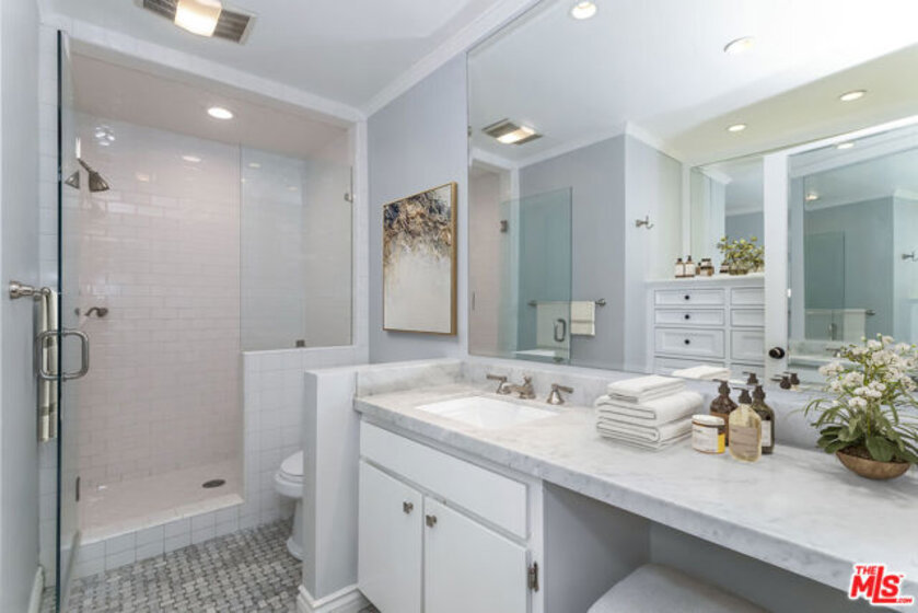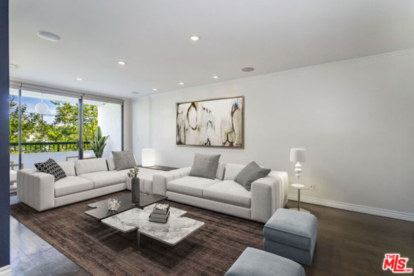 Located in the highly sought-after Doheny Terrace at the crossroads of West Hollywood and Beverly Hills, this upgraded condominium is one of the most desirable in the building. Quiet, private, and extensively improved, it sits well above street level with southern exposure. Unit #311 features rich hardwood flooring throughout, fireplace, a reimagined kitchen with high-end appliances and streamlined cabinetry, and thoughtfully renovated bathrooms with quality fixtures and finishes. Oversized windows bring in abundant natural light, and the floor plan offers a balance of separation and flow, making it ideal for both entertaining and working from home. Both bedrooms are generously sized with ample closet space, and the primary suite includes an en-suite bath and ample closet space. Additional features include IN-UNIT LAUNDRY (stacked machines), dedicated 220v electric car charger, central HVAC, and a quiet balcony facing Cynthia Street. The building, located in the highly desirable Norma Triangle, offers amenities such as a sparkling pool, sauna, gym, and a shared laundry facility (as mentioned, this unit has its own in-unit laundry). The best of Los Angeles' dining, shopping, and nightlife is just outside your door. Two gated tandem parking spaces near the elevator and low HOA dues of $682.40/mo., which includes earthquake insurance for the building. Seller to pay pending assessment, which is $87/mo. for building improvements. Photos are virtually staged.