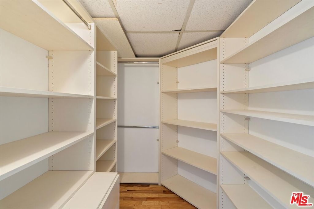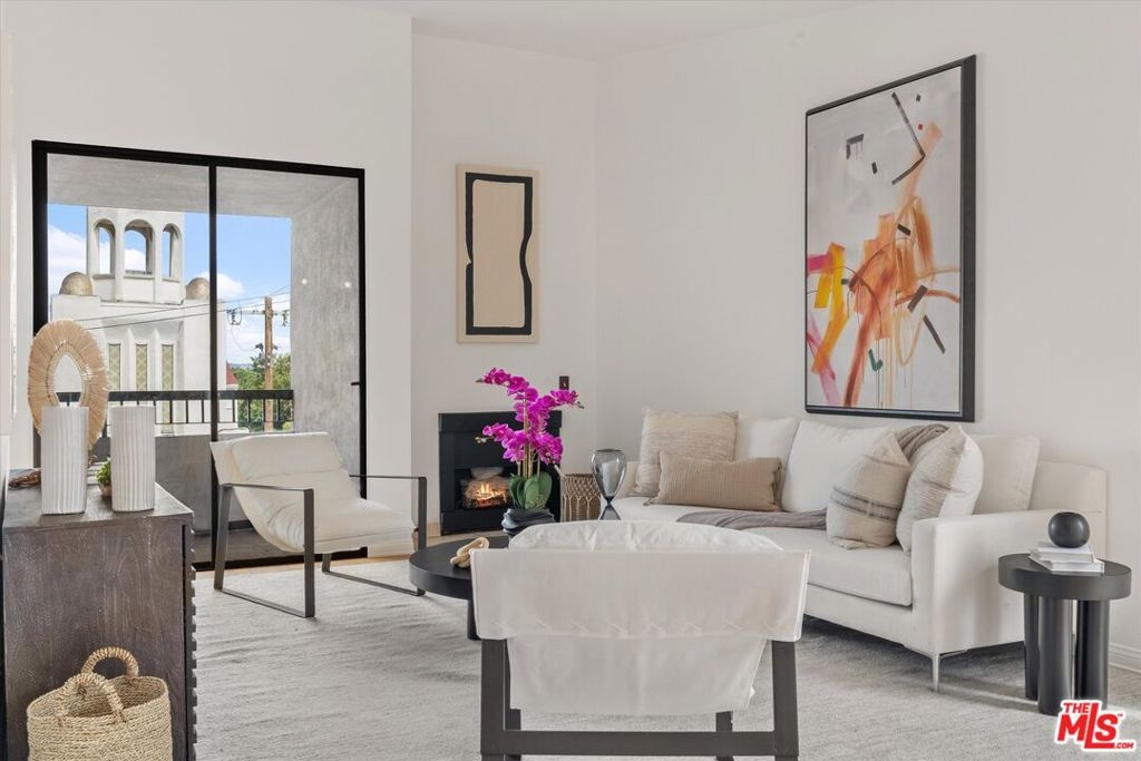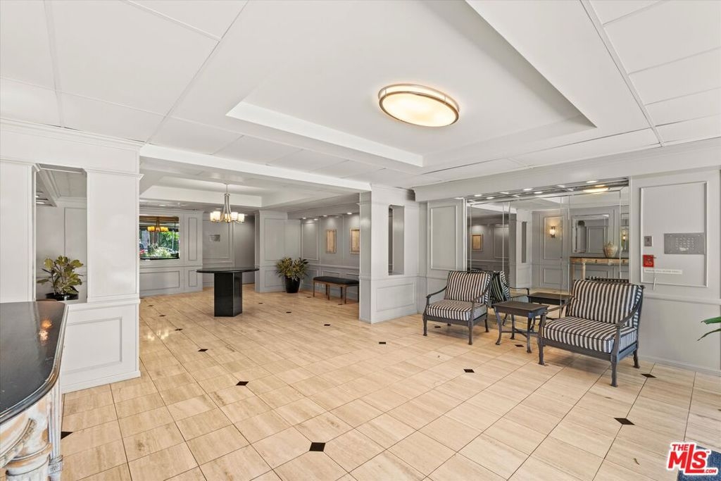 Unit 417 is a standout residence in Doheny Terrace, offering space, privacy, and beautiful views. This top-floor, corner unit faces south and features an open floor plan with vaulted ceilings and floor-to-ceiling windows that fill the space with natural light. It is located in the back corner of the building and enjoys extra peace and quiet. The primary suite offers plenty of closet space and an en-suite bath designed for comfort. The guest bedroom is also spacious, with its own walk-in closet and a second full bath that includes a Jacuzzi tub. Both bedrooms enjoy a unique view of sunlight shining through the nearby church bell tower, creating a serene morning atmosphere. The private balcony is perfect for relaxing, and the living room's fireplace adds warmth and charm. The building offers several amenities, including a pool, outdoor lounging and dining areas, a gym, and a secure parking garage with two tandem spaces. Conveniently located just moments from Beverly Hills, West Hollywood, and the Sunset Strip, this unit offers comfort and accessibility.