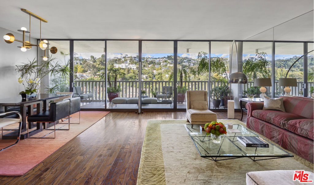 Rising 11 stories high, live at one of LA's most iconic addresses with unobstructed mountain views. Set amongst the backdrop of the Hollywood Hills, one is immediately immersed in unparalleled luxury as they enter the double doors to the foyer. The foyer reveals an expansive living room with floor-to-ceiling glass doors opening onto a 40' balcony expanding the full length of the residence. The light-infused dining room adorned with a Kelly Wearstler Linear Chandelier leads onto the gourmet chefs' kitchen fully equipped with GE Monogram Cooktop and Caesarstone Countertop. The lavish primary bedroom is a true sanctuary with warm textures and electric roller shades. It is complemented by the spa-inspired, Carrera marble bathroom. Other amenities include Adorne designer switches & outlets throughout. Living at Sierra Towers offers the utmost in privacy and service with 24-hour security, valet, resort-like pool, spa, state-of-the-art fitness center, firepits and multiple areas for entertaining. Moments from Beverly Hills, the Sunset Strip and the best that Los Angeles has to offer, including Soho House, Lavo and other cultural hot spots. Rising above it all, this is the ultimate in legendary living.