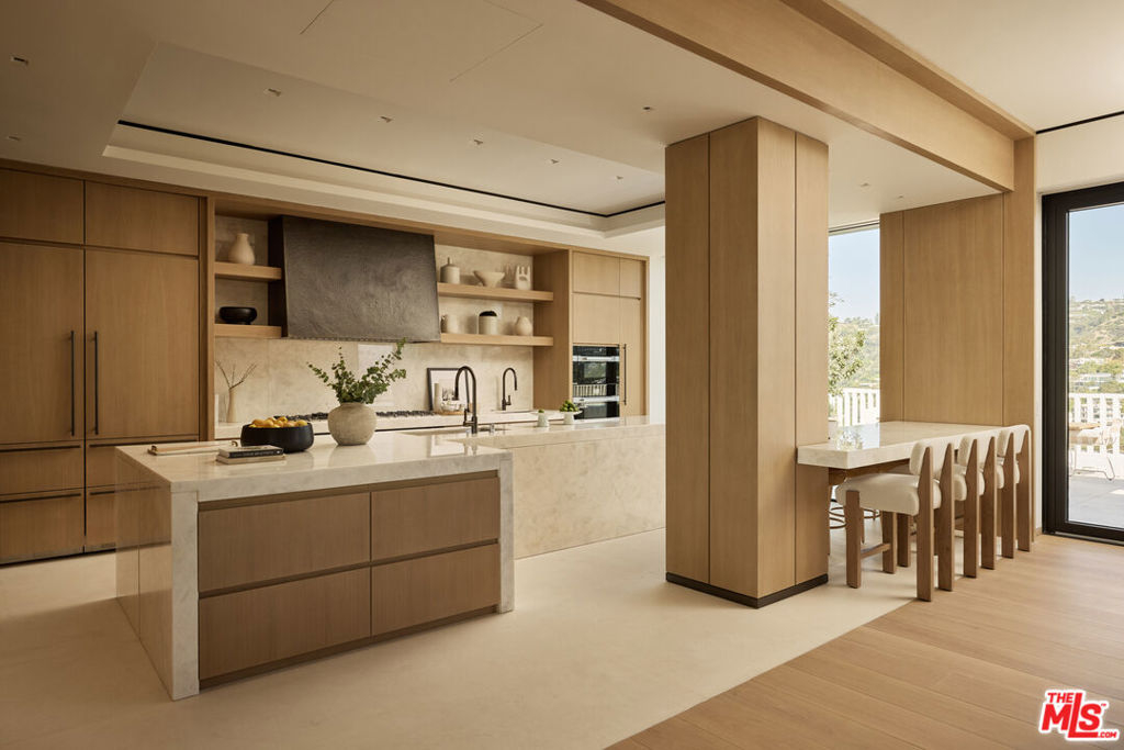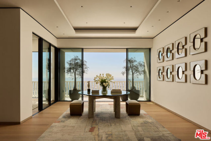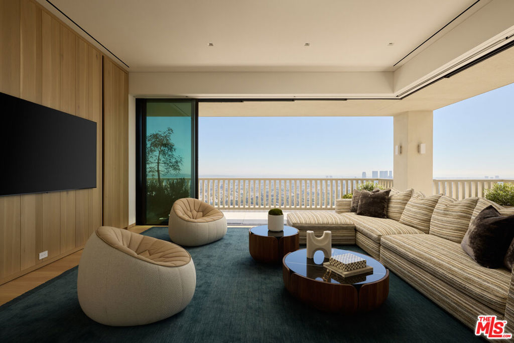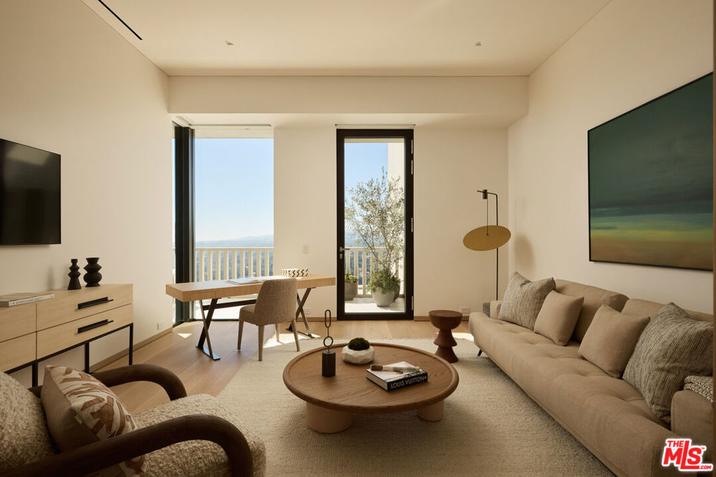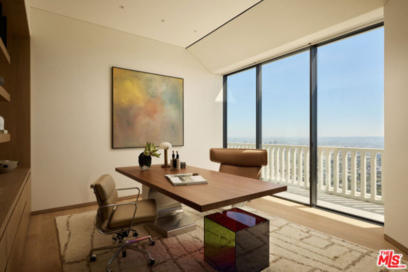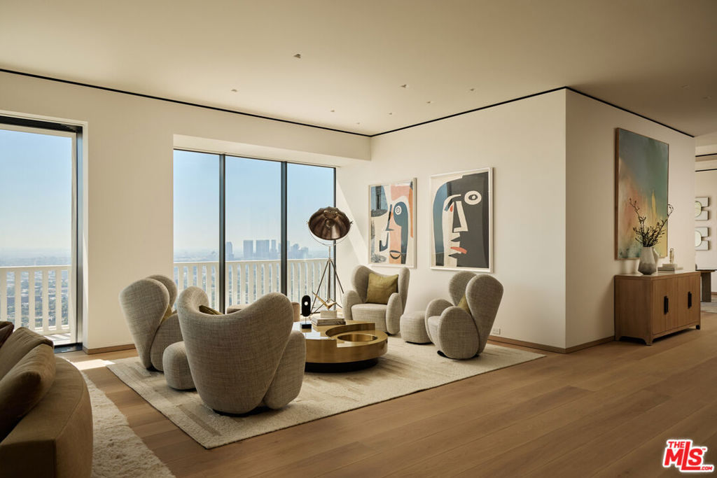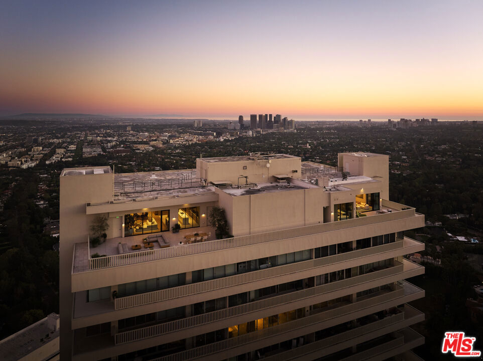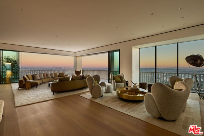 Perched above the Sunset Strip, the crown jewel of Sierra Towers redefines penthouse living. This meticulously crafted residence, designed by the award-winning firm Workshop/APD, spans 7,365 sf across 3 bedrooms and 6 bathrooms (5 full, 1 powder) offering an unparalleled stage for Los Angeles' most cinematic vistas. From the glittering expanse of the Hollywood Hills to the vast sweep of the Pacific Ocean, the unobstructed, 360-degree vistas are nothing short of transcendent. A private elevator opens to a grand foyer, where double doors reveal walls of glass framing the city beyond like an ever-changing masterpiece. Outside, a 5,454 sf wrap-around terrace floats above it all, a dramatic backdrop for morning light, sunset cocktails or starlit soires. The line between indoors and out dissolves, extending daily life into the open sky. Inside, modern design meets timeless warmth with wide-plank white oak floors, soaring ceilings and walls of floor-to-ceiling glass that flood the interiors in natural light. Simena limestone and Cristallo quartzite surfaces, custom white oak millwork and hammered bronze accents reflect impeccable craftsmanship and refined detail throughout. The open living and dining spaces set the stage for glamorous entertaining, anchored by a dramatic stone fireplace and framed by sweeping cityscapes. The sculptural gourmet kitchen pairs state-of-the-art appliances with custom oak cabinetry, quartzite countertops, a generous island, wet bar and breakfast bar with seating. The primary suite is a private sanctuary with terrace access and panoramic Hollywood Hills views. A sitting lounge offers gallery-style walls for art, while dual spa-worthy bathroom suites in marble and granite pair with custom closets designed for couture collections. Two additional guest bedroom suites provide sophisticated comfort and curated finishes. Additional extraordinary spaces include a media lounge, wet bar, gym/office and gallery, while luxurious amenities such as integrated Savant home system, designer lighting, radiant floor heating and motorized window treatments ensure effortless luxury. Sierra Towers remains Los Angeles' most iconic high-rise address, synonymous with prestige and discretion. Residents enjoy 24/7 concierge, valet and security, along with a renovated fitness center, swimming pool, spa, sauna, ballroom, and conference facilities, all moments from Beverly Hills, West Hollywood and world-class dining and shopping. More than a residence, this penthouse is a rarefied vantage point, an architectural statement suspended above the city, delivering a lifestyle that is as extraordinary as the city it overlooks.