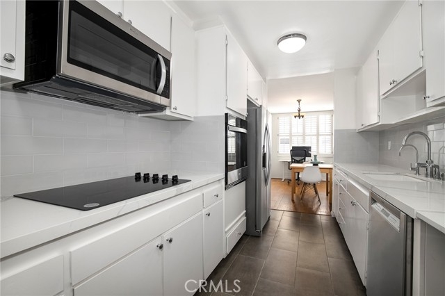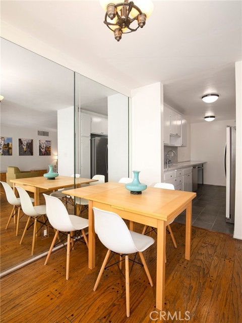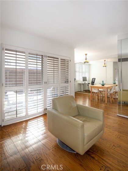Proud to present this beautifully updated 1 bedroom, 1.5 bath West Hollywood condo offering 966 sq ft of comfortable living in one of the area’s most desirable tree-lined streets. Classic hardwood floors flow throughout, leading you into a bright and spacious living room with sliding glass doors that open to a private, enclosed patio overlooking the sparkling pool—perfect for morning coffee or evening relaxation. The dining area includes a versatile extension that can serve as an office, den, or creative flex space. The modern galley kitchen features quartz countertops, stainless steel appliances, sleek cabinetry, and extended counter space ideal for cooking and entertaining. A convenient half bathroom for guests is a rare perk, while the spacious bedroom also offers direct patio access, two closets—including a generous walk-in—and a recently remodeled ensuite bathroom boasting quartz counters, contemporary tilework, and a glass-enclosed shower. Additional highlights include central heat and air with a newer HVAC system, a Smart Ecobee thermostat, and the option to install in-unit ventless laundry with HOA approval. HOA dues include water, trash, earthquake insurance, high-speed internet, and premium cable. All this in a prime location moments from Trader Joe’s, Gelson’s, Whole Foods, and the endless dining, shopping, and entertainment options along Melrose Ave and Santa Monica Blvd. A fantastic opportunity to enjoy stylish living in the heart of West Hollywood.
