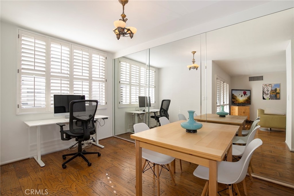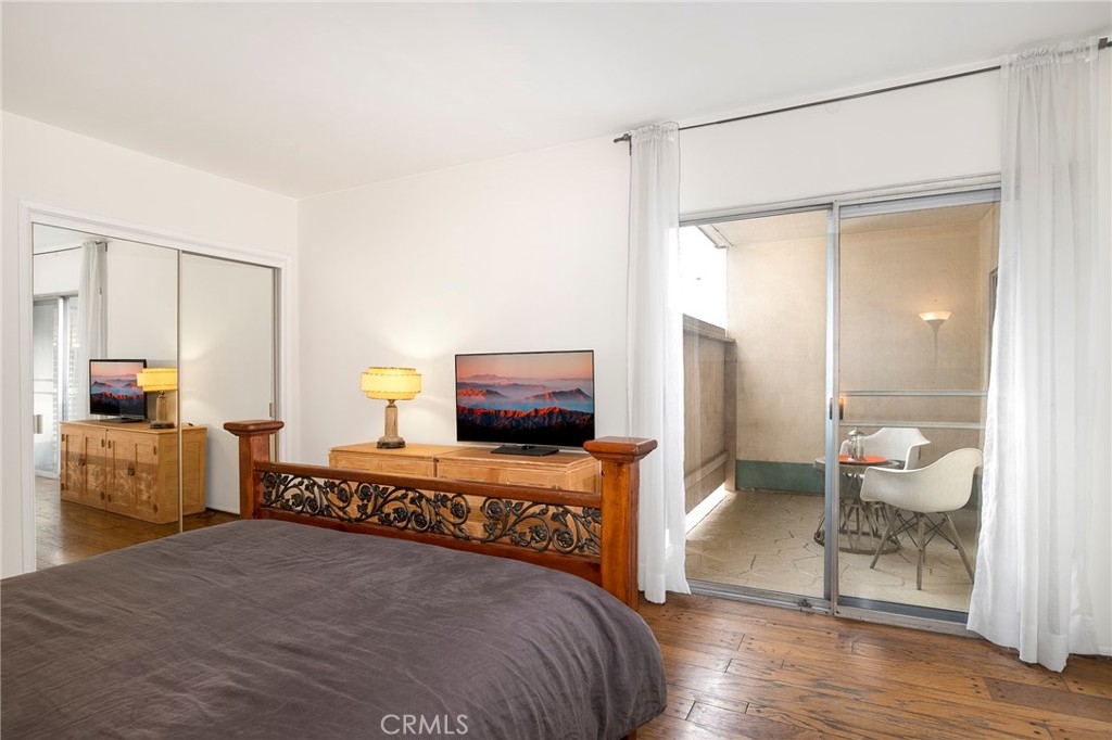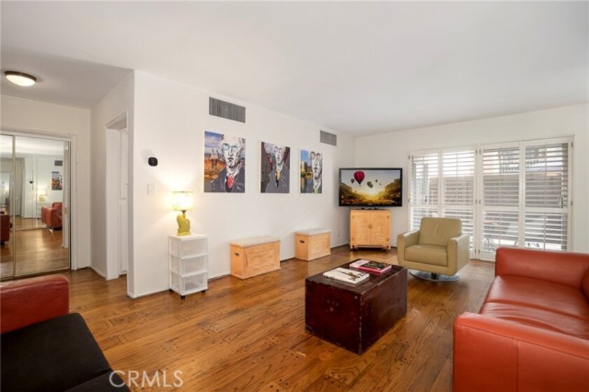 Proud to present this beautifully updated 1 bedroom, 1.5 bath West Hollywood condo offering 966 sq ft of comfortable living in one of the area’s most desirable tree-lined streets. Classic hardwood floors flow throughout, leading you into a bright and spacious living room with sliding glass doors that open to a private, enclosed patio overlooking the sparkling pool—perfect for morning coffee or evening relaxation. The dining area includes a versatile extension that can serve as an office, den, or creative flex space. The modern galley kitchen features quartz countertops, stainless steel appliances, sleek cabinetry, and extended counter space ideal for cooking and entertaining. A convenient half bathroom for guests is a rare perk, while the spacious bedroom also offers direct patio access, two closets—including a generous walk-in—and a recently remodeled ensuite bathroom boasting quartz counters, contemporary tilework, and a glass-enclosed shower. Additional highlights include central heat and air with a newer HVAC system, a Smart Ecobee thermostat, and the option to install in-unit ventless laundry with HOA approval. HOA dues include water, trash, earthquake insurance, high-speed internet, and premium cable. All this in a prime location moments from Trader Joe’s, Gelson’s, Whole Foods, and the endless dining, shopping, and entertainment options along Melrose Ave and Santa Monica Blvd. A fantastic opportunity to enjoy stylish living in the heart of West Hollywood.