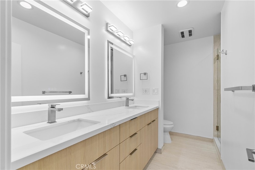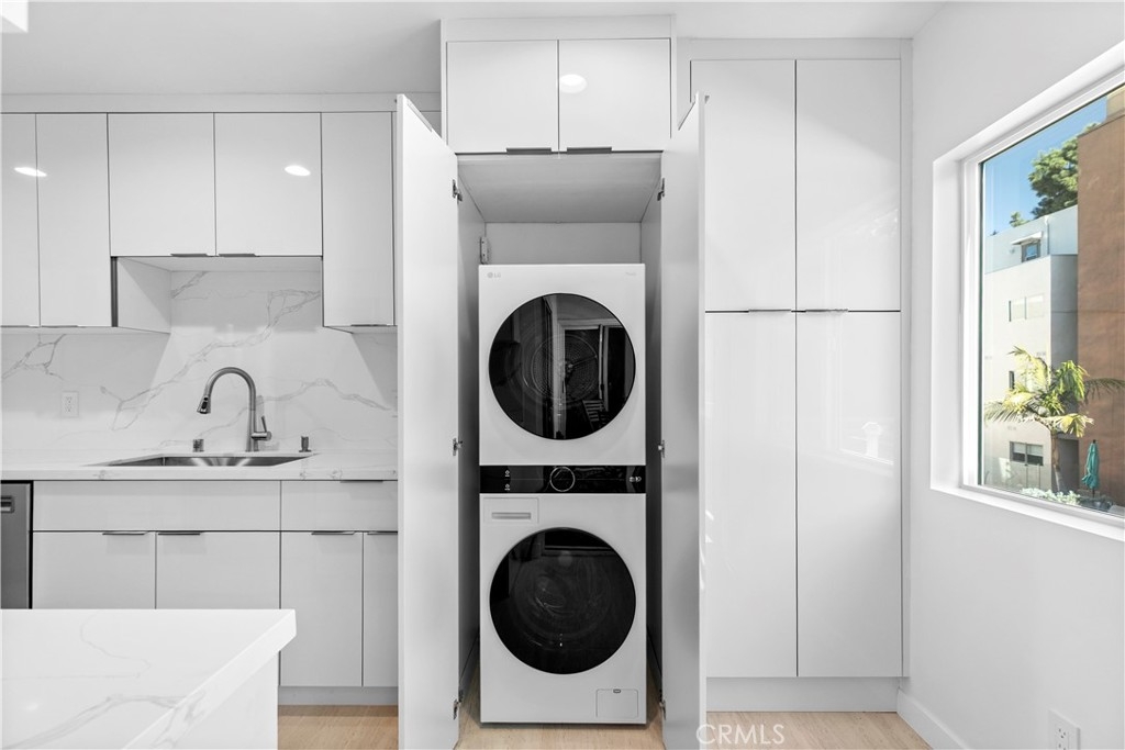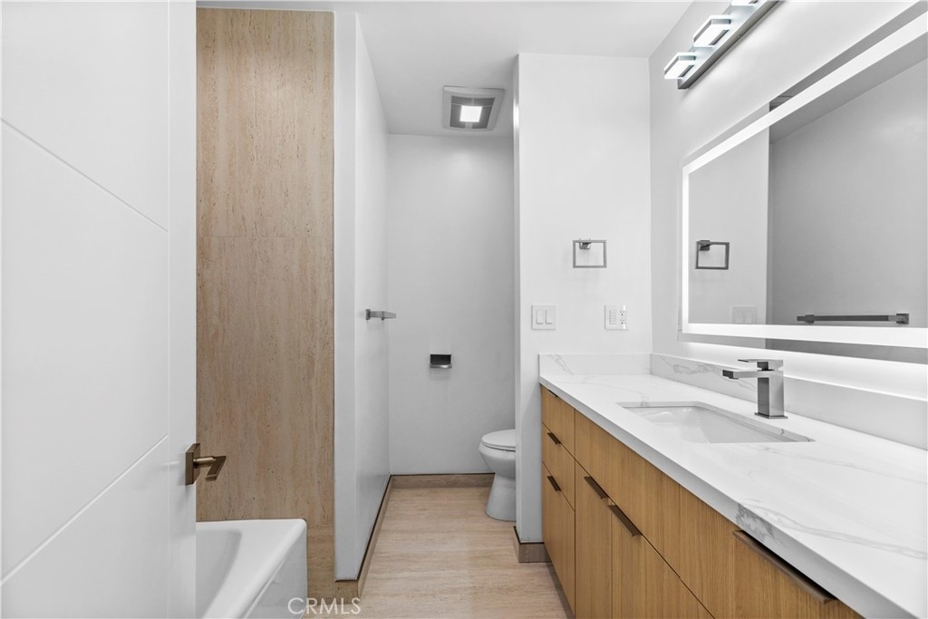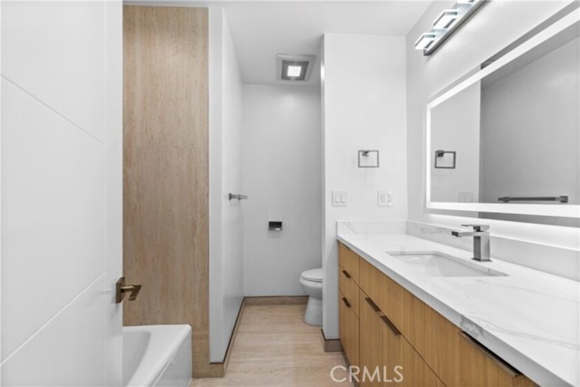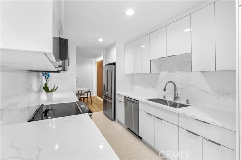 Stunning fully remodeled West Hollywood residence featuring high-end finishes and thoughtful design throughout. This turnkey home offers a sleek modern kitchen, open-concept living and dining areas, and a spacious layout filled with abundant natural light. The entire renovation was completed with permits, including a permitted in-unit washer and dryer, providing both convenience and peace of mind. Located in a well-maintained complex with a sparkling pool, this beautifully renovated home features two generously sized bedrooms, including a spacious primary suite with a walk-in closet and a fully remodeled en-suite bathroom. Both bathrooms have been extensively upgraded with modern fixtures, designer finishes, and elegant details. The bright living and dining area flows seamlessly onto a large private balcony, perfect for morning coffee or relaxing evenings. Additional highlights include two assigned parking spaces and a spacious private storage unit, adding exceptional value and functionality. With stylish finishes throughout, a light-filled interior, and a prime West Hollywood location, this exceptional home offers comfort, sophistication, and effortless living.