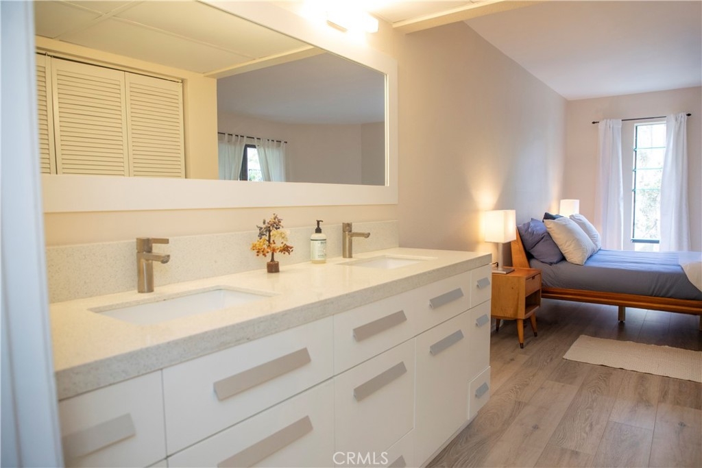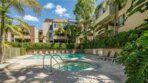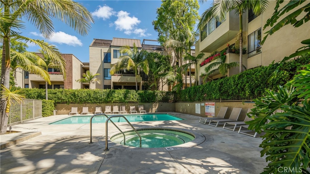 Welcome to this spacious 1-bedroom, 1-bath corner unit in the prestigious The Courtyards. 793 sq ft of open living with hardwood floors, modern decorative stone fireplace, in-unit laundry, and a huge balcony with access from living, dining, and bedroom. The open kitchen features stainless steel appliances, quartz counters, and designer tile backsplash. Bathroom and bedroom are updated with luxe finishes and plenty of closet space. Central air keeps it comfy year-round. One covered parking with elevator access is included. The Courtyards offers beautifully landscaped grounds, a recently renovated pool and hot tub, gym, sauna, security patrol, club room, water, central AC, and on-site management. Live just steps from the best of West Hollywood: trendy cafes, top restaurants, boutiques, nightlife, and everything that makes this neighborhood the most desirable places to call home. Perfect as a primary residence or investment opportunity. Schedule your showing today!