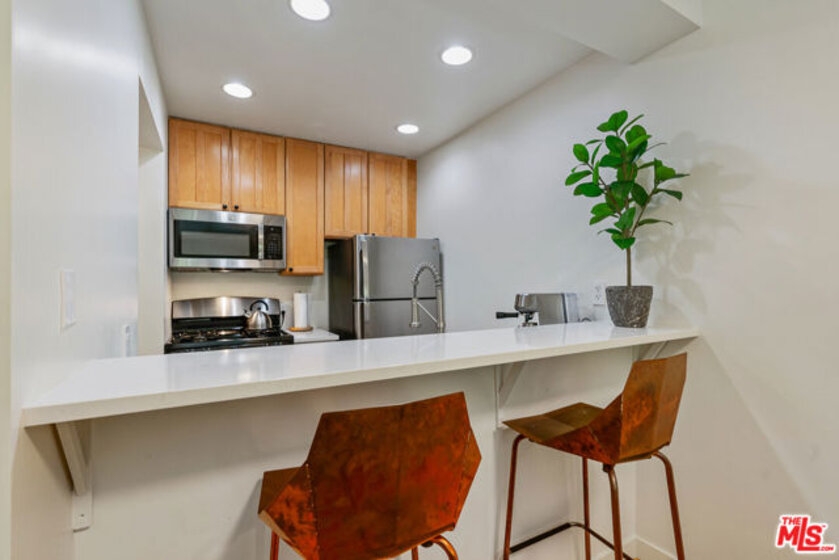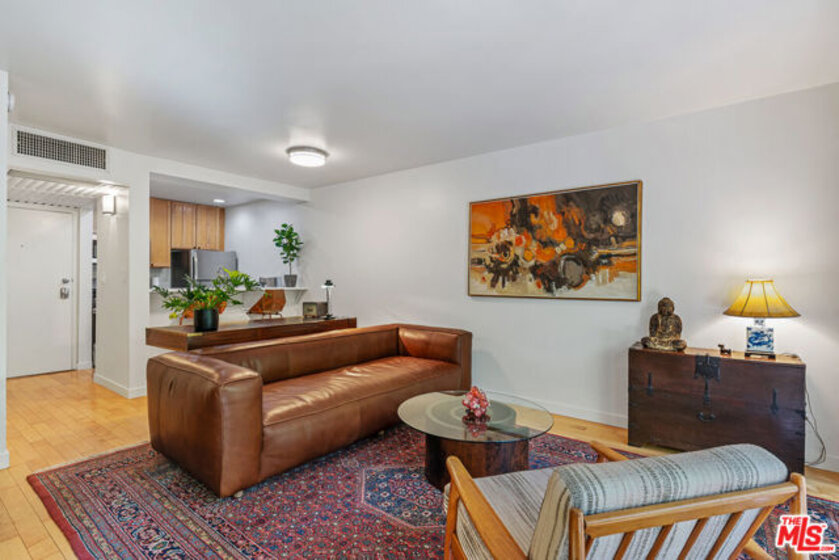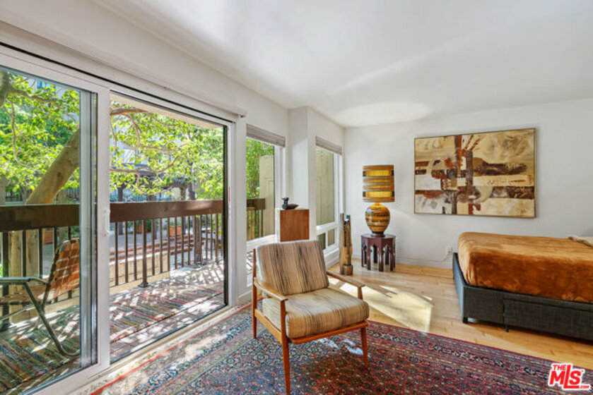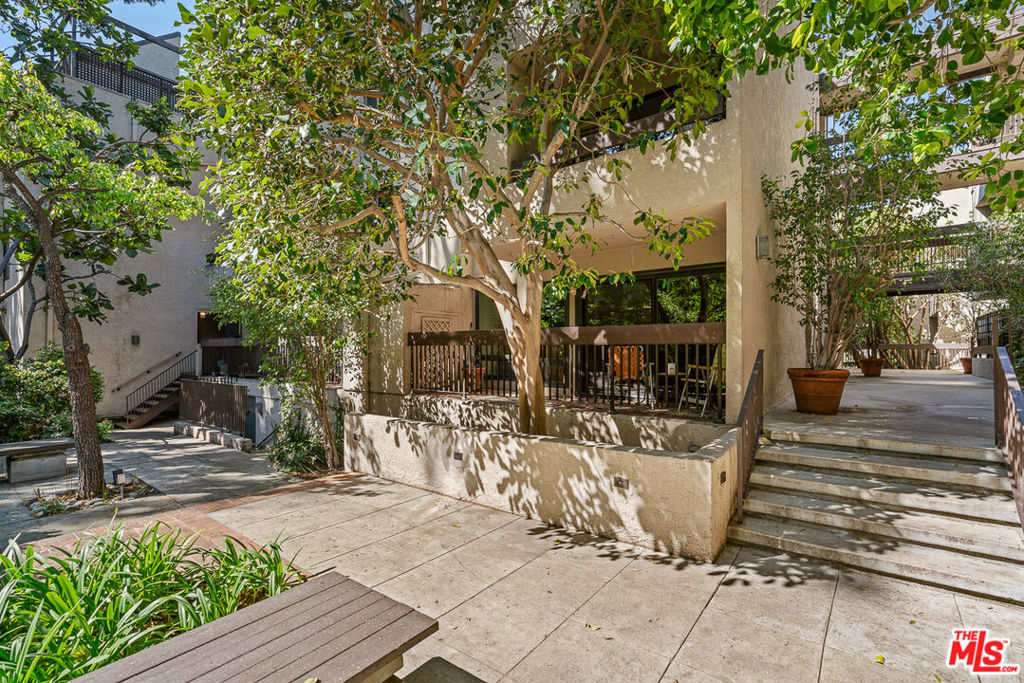 Cozy and private tucked away corner unit condo sharing only 1 wall located in the very green "Courtyards" complex in West Hollywood. Clean and beautifully updated 1st floor studio with refinished golden maple floors and brand new floor to ceiling windows with large sliding doors perfectly frame its peaceful views of trees and greenery. Open and spacious functional living area connected to kitchen with new white quartz countertops, stainless steel appliances and refinished cabinets with a breakfast bar. Bathroom offers new vanity and mosaic tile floors that pop with color. Huge balcony perfect for entertaining or unwinding after a long day. One parking spot included. Full service complex with gym, pool, updated clubhouse and sauna. HOA includes earthquake insurance, water, gas, sewer, trash, internet and security. Come take a look.
