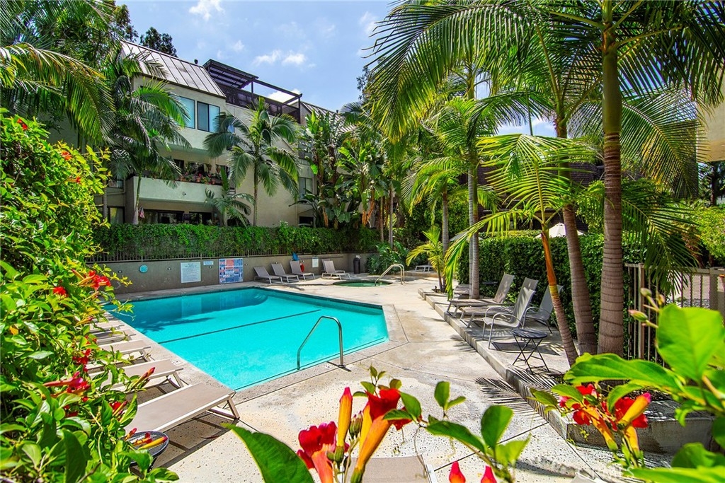If you know condos in WeHo, you know the Courtyard Condominiums on Kings Road. A cherished destination boasting the most captivating gated grounds. Leave all your troubles at the front gate as you enter into this magical environment set upon nearly 4 glorious acres. Gorgeous lush greenery & the serene sounds of a tranquil waterfall as it flows into a lagoon set the tone & ease the mind. Inside, all your windows frame tranquil snapshots of the natural beauty that surrounds. Gorgeous newer flooring & newer windows enhance the spacious interior. Open kitchen offering loads of cabinetry adjoins a private balcony amongst the trees creating an ideal locale to savor a meal or capture some much needed quite-time. Large bedroom affords balcony access, ample closets & an ideal dressing area. Beautiful pool & spa, gym, sauna, club room, bicycle storage, library & secure parking with additional storage. HOA dues includes nightly security patrol, on-site common area maintenance personal, earthquake insurance, water & gas plus they do allow the installation of in-unit laundry. When you decide to step-out of this incredible sanctuary within the city, you'll be mere moments to all the trendy shops & scrumptious eateries along Melrose & Santa Monica Blvd., in addition to many of L.A.'s renowned hot spots & the adjacent King's Park. Better Hurry!