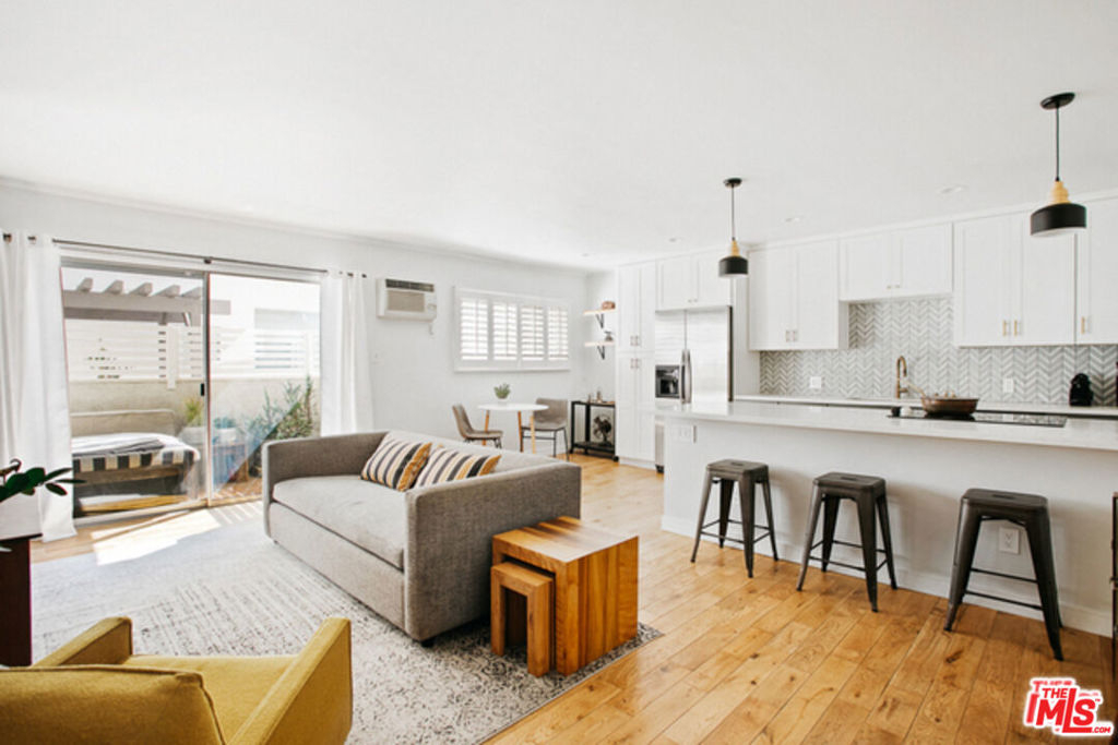 Stunningly remodeled residence in prime West Hollywood. Inside you'll find chic design & an open layout where new French oak hardwood floors flow throughout a sun-splashed interior. The living room seamlessly flows into the dining room & kitchen; perfect for entertaining. The eat-in kitchen is a total dream with quartz countertops & peninsula, custom cabinets & pantry & stainless steel appliances. Unit boasts a spacious bedroom with custom closet, updated bath with jetted tub & marble flooring, in-unit laundry & a lovely outdoor terrace with patio surround for added privacy makes the perfect place to relax. The complex has a newly renovated lobby, a solar heated pool, & a spectacular rooftop deck with jaw-dropping city views of DTLA & WeHo. Unit comes with one secure underground parking space + storage unit. Nestled in the Norma Triangle, putting you in the center of all the action, with immediate access to the Sunset Strip & WeHo's most beloved venues, shops, dining and nightlife.