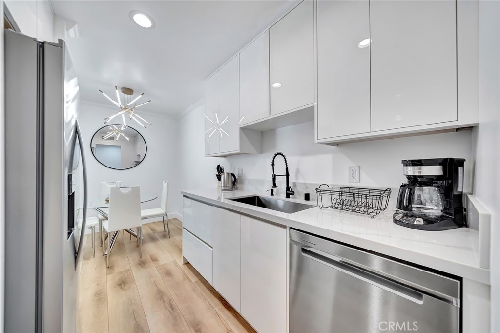 Huge price reduction. Motivated seller! Best Location! Beautiful, newly remodeled 1 bedroom apartment in the heart of West Hollywood. You can literally walk to Sunset Strip within 1 minute and enjoy all the cute restaurants, shopping centers and entertainment West Hollywood has to offer. This quiet and private complex is near Trader Joe's, Whole Foods Market, Pavilions, and Gelson's. Tons of natural sunlight with open floor plan. Luxury vinyl floor through out. This corner unit also has a spacious, private outdoor balcony. The resort-style building offers a luxurious pool, spa, BBQ area, spacious lounging deck, gated garage, assigned parking, onsite laundry facility, low HOA, and controlled access. This is the perfect home for you to live, love and laugh in WeHo.