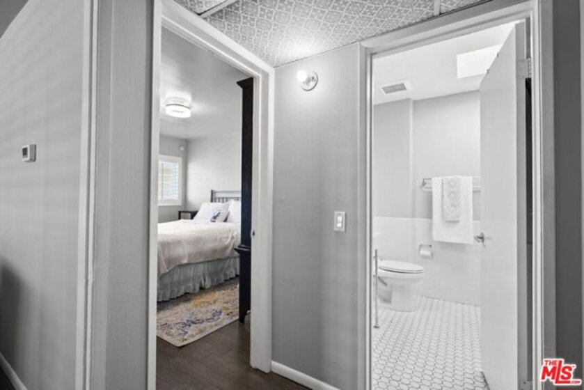 The heart of West Hollywood...970 Palm Ave #218 sits on the top floor of a lush, tropical mid-century building, well maintained, with a chic, relaxed charm. The building is beautifully maintained and peacefully tucked away in prime West Hollywood. You'll find yourself surrounded by the city's most iconic destinations: the Sunset Strip, Santa Monica Boulevard, the Norma Triangle, and Beverly Hills. Live steps from the best of LA right outside your door. This move-in-ready home blends mid-century character with modern updates, offering roomy layout, a sleek kitchen with new LG refrigerator, a spa-inspired bath with frameless glass shower and a skylight that fills the room with natural light. You'll also love the large picture window in the living/dining area facing the center courtyard, allowing tons of light- with foldable shutters for privacy, and to stay cooler on warm days when desired. With few shared walls and no neighbors above OR below, you'll have an uncommon sense of privacy rarely found in city living. Enjoy resort-style amenities, including a sparkling heated pool, spa, BBQ area, keyless entry, one secure parking spot (plus extra storage), a private dog walk, and impeccably maintained grounds, all within one of West Hollywood's most walkable and desirable neighborhoods.